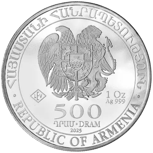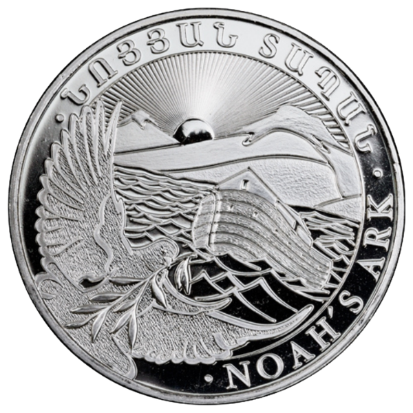 The coins, designed by Armenian artist, Eduard Kurghinyan, commemorate Noah’s Ark, which came to rest on the Mountains of Ararat after the Great Flood, according to Genesis 8:4 in the Bible and the Torah. Each denomination of the coin is composed of .999 fine silver. Depicted on the obverse of the coins is the Armenian coat of arms, with the value (as “ԴՐԱՄ·DRAM”), the year of minting, the coin’s silver purity, and the number of troy ounces of silver that make up the coin. Surrounding all this is the state title of Armenia (Armenian: ՀԱՅԱՍՏԱՆԻ ՀԱՆՐԱՊԵՏՈՒԹՅԱՆ; English: REPUBLIC OF ARMENIA). On the reverse was a rendition of Noah’s Ark and a dove holding an olive branch, with Mount Ararat in the background. Circling this image is an inscription in Armenian reading, “ՆՈՅՅԱՆ ՏԱՊԱՆ”, and one in English reading, “NOAH’S ARK”.